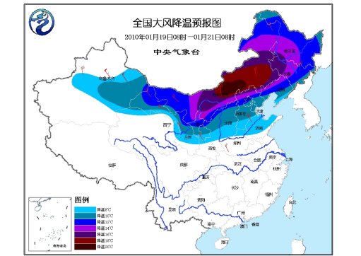 19日08時至21日08時,新疆東部和沿天山地區(qū)、西北地區(qū)東部、內(nèi)蒙古、華北、東北、黃淮北部等地自西向東將先后有5~6級、陣風(fēng)7~8級偏北風(fēng),新疆山口地區(qū)風(fēng)力可達8~10級;上述地區(qū)的氣溫將下降8~12℃,其中,內(nèi)蒙古中東部、東北地區(qū)西部的部分地區(qū)溫度降幅可達14~18℃,局部地區(qū)有18~20℃。20日早晨,阿勒泰地區(qū)的最低氣溫將下降到零下35至零下43℃。20日、21日早晨,內(nèi)蒙古東北部的最低氣溫也將下降到零下30至零下35℃,局地達零下40℃。