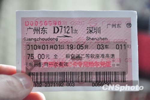 2010年1月22日消息,今年春運鐵路部門在廣鐵集團、成都鐵路局部分車站試行火車票實名制,在深圳工作的孟軍寧成為預(yù)訂中國首張實名制火車票的旅客。 中新社發(fā) 呂雪良 攝