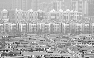 石家莊一個(gè)城中村與遠(yuǎn)處高樓相映襯,城中村由于租房?jī)r(jià)格低廉成為很多低收入家庭的聚居區(qū),而樓房則是他們中很多人遙不可及的夢(mèng)想。 新華社記者 鞏志宏 攝