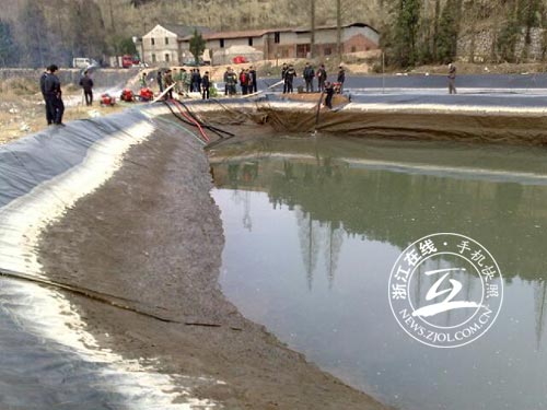 昨天下午5點左右,事發(fā)地封鎖解除后,記者來到了龍珠潭水庫下與養(yǎng)魚塘連接的蓄水池旁,只見蓄水池四壁光滑,坡度很陡,表面覆蓋著一層黑色薄膜,旁邊并無警示牌。王燮蛟介紹,水池最深處2米,在發(fā)現(xiàn)三具孩子尸體的地方,警方發(fā)現(xiàn)水池壁上有滑痕。