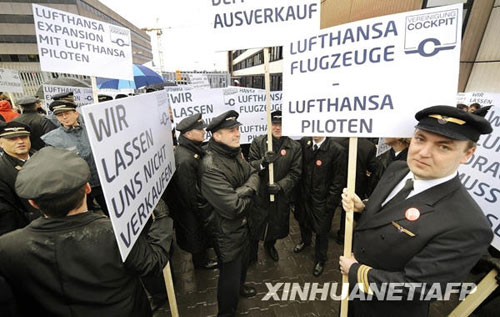 漢莎的飛行員是19日與資方談判破裂后宣布罷工的。飛行員工會曾向資方提出了加薪、增加工會在公司決策中的發(fā)言權以及保障飛行員工作崗位等要求。在法蘭克福勞工法院調停下,飛行員工會同意3月8日之前不再罷工,但如果屆時勞資雙方還未達成協議,罷工還將繼續(xù)。據漢莎航空公司估計,飛行員大罷工每天會給公司造成2500萬歐元的經濟損失。