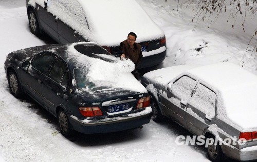 2月23日,新疆烏魯木齊市降下小雪,一位市民清理車頂?shù)姆e雪準(zhǔn)備出行。據(jù)新疆氣象臺介紹,新疆奎屯、烏蘇等地遭受暴雪侵襲,積雪厚度已達(dá)50至60厘米。來自西西伯利亞的冷空氣21日再一次襲擊新疆北疆地區(qū),受此影響北疆各地、天山山區(qū)、哈密北部有微到小量的雪或雨夾雪,其中伊犁河谷、阿勒泰、塔城等地的部分地區(qū)可達(dá)中到大量。 中新社發(fā) 劉新 攝