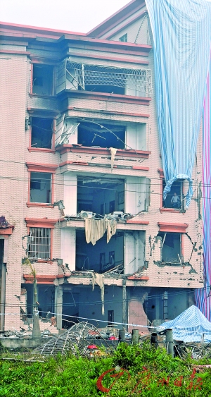 現(xiàn)場(chǎng):七層樓炸成“篩子”
