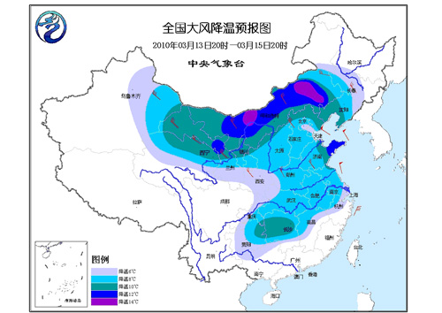 中央氣象臺(tái)13日18時(shí)繼續(xù)發(fā)布寒潮藍(lán)色預(yù)警,13日20時(shí)至15日20時(shí),中東部大部地區(qū)將普遍出現(xiàn)6~8℃降溫,其中,內(nèi)蒙古中西部和東南部、西北地區(qū)中東部偏北地區(qū)、河北北部、遼寧西部及山東半島降溫幅度可達(dá)10~14℃,上述大部地區(qū)還伴隨著4~6級(jí)偏北風(fēng),加劇了寒冷的感覺。南疆盆地、內(nèi)蒙古中西部、甘肅西部等地的部分地區(qū)還會(huì)有揚(yáng)沙或浮塵現(xiàn)身,局地將遭遇沙塵暴。15日凌晨,內(nèi)蒙古中西部、甘肅西北部最低氣溫為零下10至零下15℃,西北地區(qū)東北部、華北北部最低氣溫為零下7至零下10℃。