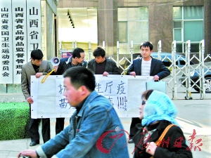 家長(zhǎng)要求山西省衛(wèi)生廳徹查疫苗事件原因。