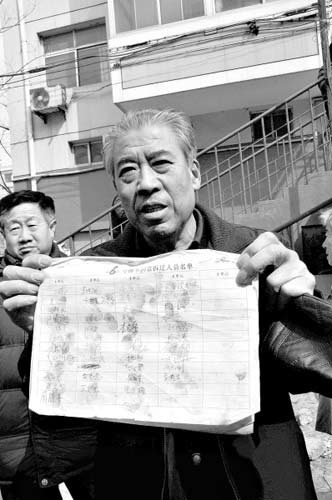享園小區(qū)居民向記者展示“不同意拆遷人員名單”新華社記者 王民 攝
