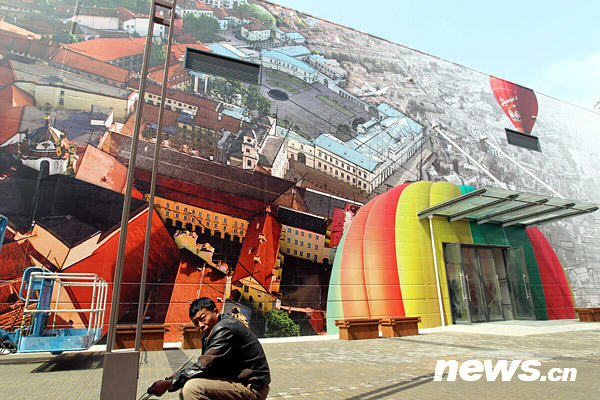 3月31日,工人正在立陶宛國(guó)家館前施工。4月1日,上海世博會(huì)將迎來開幕倒計(jì)時(shí)30天,目前,世博園區(qū)內(nèi)各項(xiàng)建設(shè)已進(jìn)入尾聲,近萬名工人正加班加點(diǎn),確保4月下旬世博園區(qū)如期投入試運(yùn)營(yíng)。新華社記者 任瓏攝