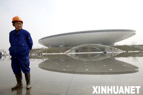 3月31日,位于上海世博會(huì)浦東園區(qū)、造型呈飛碟狀的世博文化中心正式竣工,一名工人在世博文化中心前留影。據(jù)悉,上海世博會(huì)將于4月20日啟動(dòng)試運(yùn)行,預(yù)計(jì)園區(qū)內(nèi)七成展館將參加試運(yùn)行。目前,世博園區(qū)建設(shè)已臨近尾聲,園區(qū)內(nèi)配套設(shè)施基本建成,布展工作正在抓緊進(jìn)行。新華社發(fā)(黃炎 攝)
