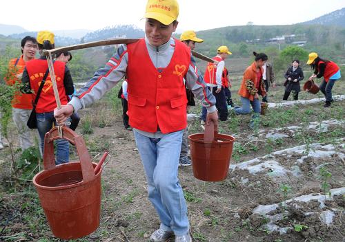 3月29日,廣西柳州市鹿寨縣的青年志愿者擔水準備灌溉土地。當日,廣西柳州市鹿寨縣團委組織一批青年志愿者,來到該縣導江鄉(xiāng)古懂村龍坪屯,幫助農民運水灌溉農田,為抗旱保春耕做貢獻。新華社發(fā)(賴柳生 攝)