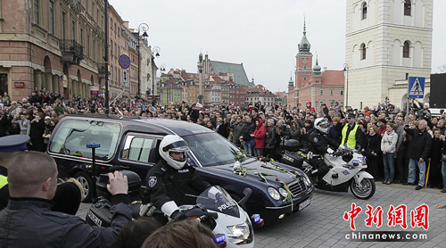 當(dāng)?shù)貢r間11日下午,在俄羅斯斯摩棱斯克附近遭遇墜機遇難的波蘭總統(tǒng)卡欽斯基的遺體回到祖國,暫時停放在總統(tǒng)府,供親屬瞻仰。波蘭政府宣布,13日向公眾開放總統(tǒng)府供人們前往志哀。遇難者葬禮預(yù)計在17日舉行。