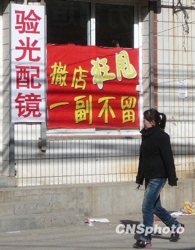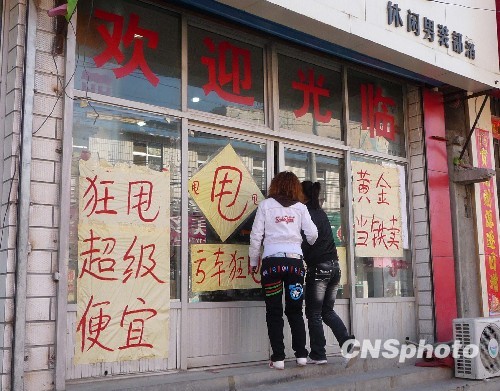 2010年4月13日,北京海淀區(qū)西北五環(huán)外的西北旺鎮(zhèn)唐家?guī)X即將拆遷改造,商家開始紛紛清倉大甩賣。 中新社發(fā) 祥云 攝