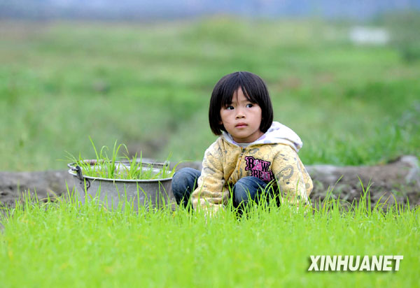 4月4日,在大化瑤族自治縣都陽(yáng)鎮(zhèn)都陽(yáng)村,6歲的黃丹丹在田間準(zhǔn)備秧苗。連日來(lái),廣西大化瑤族自治縣持續(xù)陰雨天氣,旱區(qū)群眾抓住難得有利時(shí)機(jī),積極展開(kāi)春耕春種活動(dòng),田野里到處是一派繁忙的景象。 新華社記者黃孝邦攝