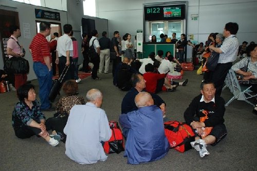候機(jī)樓有點(diǎn)像難民營。
