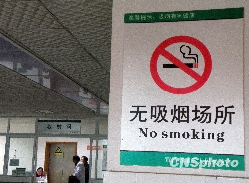 2009年12月7日,據(jù)衛(wèi)生部健教處長(zhǎng)李新華在“第三屆中國(guó)控?zé)煂W(xué)術(shù)研討會(huì)暨創(chuàng)建全國(guó)無(wú)煙醫(yī)院項(xiàng)目經(jīng)驗(yàn)交流會(huì)”上透露,全國(guó)醫(yī)療衛(wèi)生機(jī)構(gòu)將于2011年實(shí)現(xiàn)全面禁煙,在2010年,有一半醫(yī)療衛(wèi)生機(jī)構(gòu)將建成無(wú)煙機(jī)構(gòu)。 中新社發(fā) 劉君鳳 攝