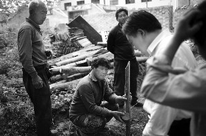 5月13日,趙作海的老房子在柘城縣縣政府工作人員的督促下進行重建。 本報記者 李強 攝