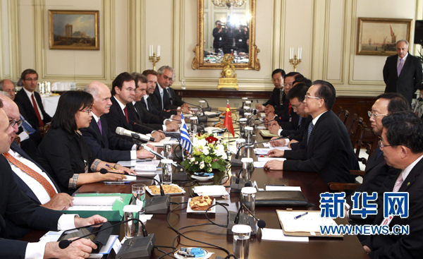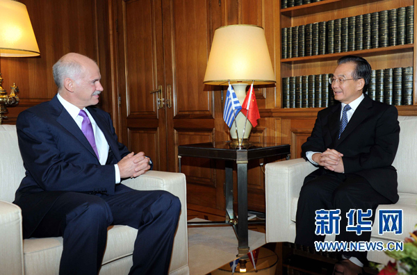溫家寶表示,中希都是文明古國,兩國人民彼此懷有親切友好感情。長期以來,雙方相互支持、相互幫助,建立了穩(wěn)固的政治互信。當(dāng)前,希臘積極應(yīng)對主權(quán)債務(wù)危機沖擊,度過了最困難的時期。中方愿與希方一道,應(yīng)對各種挑戰(zhàn),推動中希全面戰(zhàn)略伙伴關(guān)系深入發(fā)展。