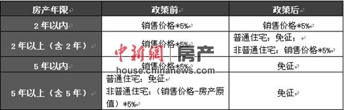 表:二手房營業(yè)稅政策調(diào)整前后對比