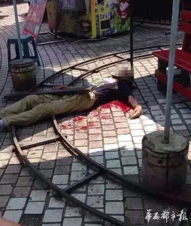 殺死三弟后,41歲的米老二并沒有遠(yuǎn)走,而是騎著摩托車來到幾十米外的海棠廣場!按蠹s12點(diǎn)半來的,身上還有血跡。”據(jù)目擊者們介紹,米老二當(dāng)時(shí)很亢奮,徑直來到廣場中央的兒童游樂區(qū),將一名經(jīng)營兒童游樂設(shè)施和銷售玩具的男子殺死。