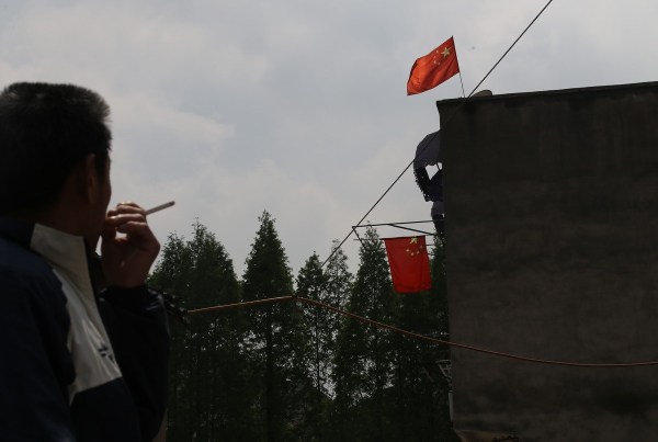 據(jù)一戶居民稱,他們在屋頂插國旗是為了抗議暴力拆遷,“房子可以倒下,但五星紅旗不能倒。”
