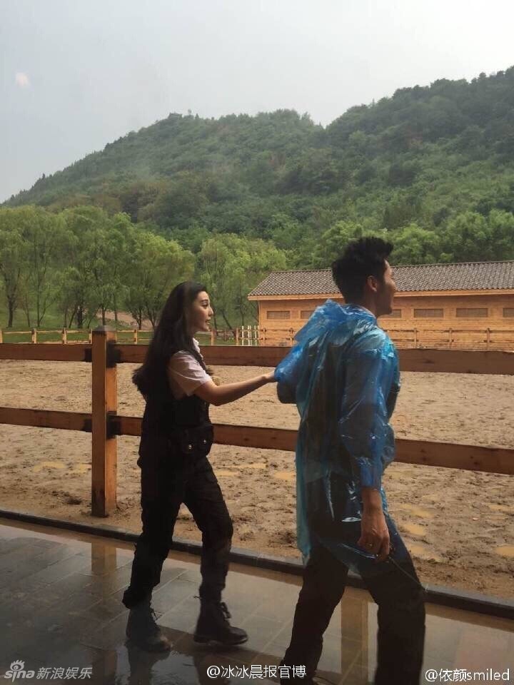 據(jù)香港媒體報(bào)道,20日,有網(wǎng)友拍得范冰冰和李晨疑似拍攝真人秀節(jié)目的照片,照片中穿上雨衣的李晨拖著范冰冰手在農(nóng)莊小跑步,十足的偶像劇浪漫情節(jié)。