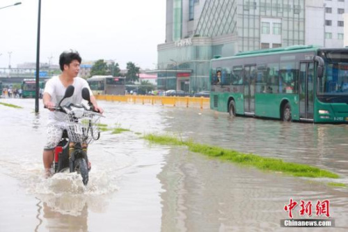 7月21日早,浙江杭州遭遇強(qiáng)降雨,市區(qū)多處路段出現(xiàn)積水,部分路段通行一度中斷。 中新社發(fā) 李晨韻 攝