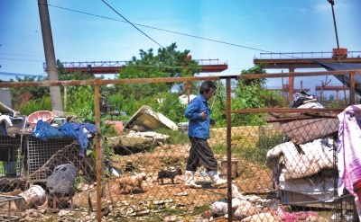 于從球的狗籠子大多不封頂,上面有一層很薄的黑紗布遮陽(yáng),地面溫度不低于40攝氏度,很多狗被熱得趴在地上一動(dòng)不動(dòng)。于從球的孫子和孫女平時(shí)就在這些黑紗布下的狗籠之間穿梭嬉戲。
