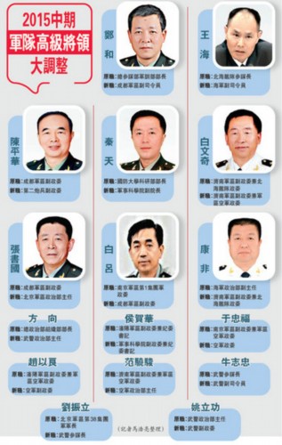 原文配圖:2015中期軍隊高級將領(lǐng)大調(diào)整。
