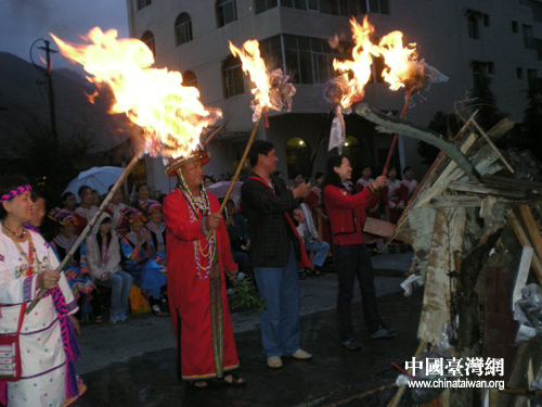 兩岸少數(shù)民族共同點燃熊熊篝火
