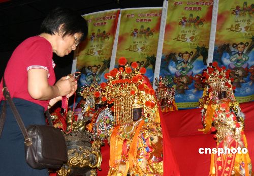 在藝苑舞臺(tái)上,大型舞蹈詩(shī)劇《媽祖》二000年一炮打紅,囊括大陸第二屆舞蹈“荷花獎(jiǎng)”比賽金獎(jiǎng)及編導(dǎo)、表演、作曲、舞美、燈光、服飾等六項(xiàng)最佳獎(jiǎng)。新編京劇《媽祖》二00五年參加了第四屆中國(guó)京劇藝術(shù)節(jié)匯演。閩臺(tái)聯(lián)辦的大型晚會(huì)《媽祖之光?相約東南》今年四月在臺(tái)中演出,兩岸明星薈萃。