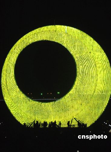 九月二十三日晚,離中國傳統(tǒng)中秋佳節(jié)只剩兩天的時間,大批中外游客紛紛前往廈門園博園觀賞外環(huán)直徑達三十六米的巨型“月光環(huán)”。 中新社發(fā) 王東明 攝