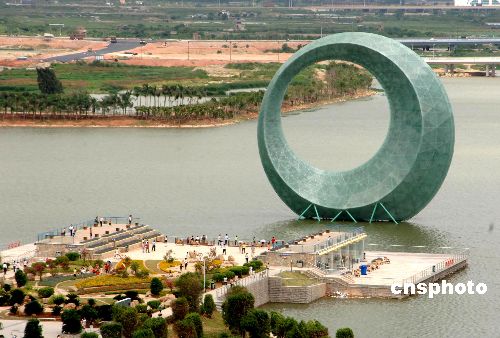 屹立于廈門園博園內湖中央的三十六米高標志性建筑“月光環(huán)”寓意“海上升明月,天涯共此時”,表達了兩岸人民共同期盼和平統(tǒng)一的心愿。 中新社發(fā) 王東明 攝