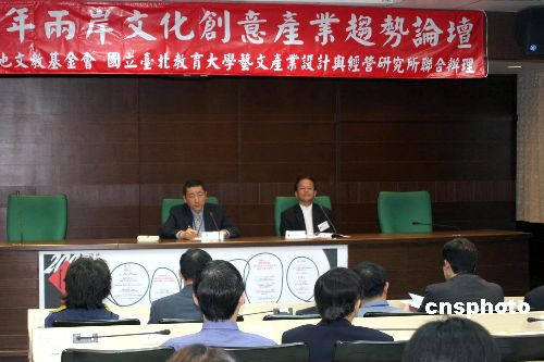 由臺灣沈春池文教基金會(huì)主辦的“兩岸文化創(chuàng)意產(chǎn)業(yè)趨勢論壇”十八日在臺北開幕。臺灣文化建設(shè)委員會(huì)副主委洪慶峰(右一)主持演講會(huì),來自北京的文化部文化產(chǎn)業(yè)司對外文化產(chǎn)業(yè)處處長高政印應(yīng)邀(左一)作《談大陸文化創(chuàng)意創(chuàng)意發(fā)展策略、特色與趨勢》的演講,前來旁聽的學(xué)者和企業(yè)家擠滿了學(xué)術(shù)報(bào)告庭。中新社發(fā) 耿軍 攝