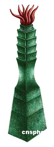火炬主體結(jié)構(gòu)以三節(jié)碧玉雕刻連結(jié)而成,火焰部分則由天然紅珊瑚組成。在象征金色火爐中發(fā)出熊熊火焰,傳達(dá)生生不熄的意念。