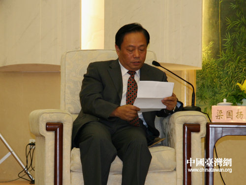 2007年10月25日,紀念臺灣光復62周年座談會在北京人民大會堂隆重舉行,全國臺聯(lián)會長梁國揚在會上發(fā)言! 。〝z影:趙穎芳)