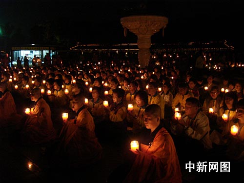 一時(shí)間,廣場(chǎng)上燭光搖曳、梵唄聲聲,一派祥和。