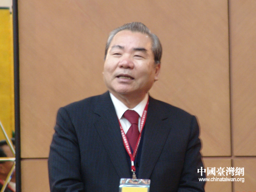 臺灣海峽兩岸和平統(tǒng)一促進會會長郭俊次在座談會上發(fā)言 。(攝影:趙穎芳)