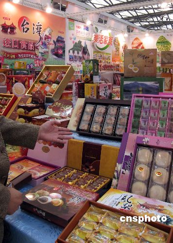 正在上海舉辦的中國(guó)大陸年度最大規(guī)模食品博覽會(huì)(FHC)上,臺(tái)灣食品行業(yè)的四十八家新老企業(yè)“組團(tuán)”亮相,成為一道美麗風(fēng)景。圖為由大陸臺(tái)商牽線,來(lái)自臺(tái)灣北中南各地的百余種美食結(jié)成“聯(lián)盟”,以“一站式”門(mén)店的模式,整體落戶上海。中新社發(fā) 許曉青 攝