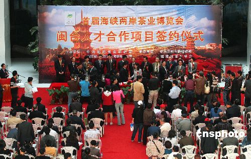 十一月十七日下午,“閩臺(tái)茶業(yè)人才合作共享機(jī)制簽約儀式”在中國閩臺(tái)緣博物館隆重舉行,共有一百多名海峽兩岸的專家學(xué)者參加了此次人才交流合作的三個(gè)余個(gè)簽約活動(dòng)。 中新社發(fā) 傅丹丹 攝
