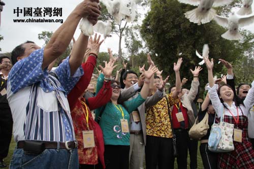 中國(guó)臺(tái)灣網(wǎng)12月2日三亞消息 昨天上午,參加“兩岸媒體海南行”采訪活動(dòng)的記者抵達(dá)三亞南山文化旅游區(qū)參訪。來(lái)自臺(tái)灣媒體的記者與大陸媒體的記者在南山“梵鐘苑”共同撞響“和平鐘”,共同放飛“和平鴿”,共同種下“和平樹(shù)”,并參加了南山寺高僧舉行的兩岸和平法會(huì),共同為兩岸和平,人民安樂(lè)祈福。(李杰)