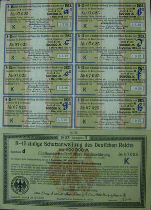臺(tái)北市的蘇文朗,當(dāng)年祖父是士林紙廠的干部,他五歲時(shí),曾看過(guò)祖父拿出兩張鈔票大小的“彩色紙片”用來(lái)包煙草。當(dāng)時(shí)他好奇地纏著祖父問(wèn),這些“圖畫(huà)紙”是哪里來(lái)的。祖父抽了一口煙,緩緩地說(shuō):“這不是圖畫(huà)紙,是外國(guó)錢!痹瓉(lái)祖父當(dāng)年奉命要以馬克債券作為紙廠員工工資,但心軟的祖父預(yù)感這些“外國(guó)錢”兌換無(wú)門(mén),因此家境富裕的他,干脆自掏腰包發(fā)薪水,而這些馬克債券就成了祖父嘴邊的彩色煙卷。