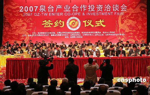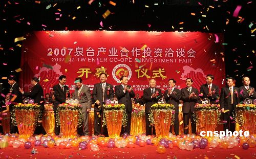 十二月十一日,“二00七泉臺產業(yè)合作投資洽談會”在僑鄉(xiāng)福建泉州開幕,商務部、國臺辦有關官員及臺灣島內各界知名人士、在大陸臺商等千余嘉賓參加。本屆“產洽會”突出“產業(yè)合作、共謀雙贏”主題,集推介、論壇、洽談、簽約、考察為一體,旨在打造新的臺商投資聚集區(qū)。中新社發(fā) 傅丹丹 攝