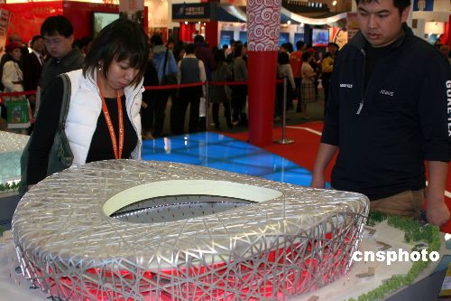 十二月十四日,第二屆海峽兩岸臺(tái)北旅展在臺(tái)北世貿(mào)展館開(kāi)幕。圖為奧運(yùn)和世博展區(qū)內(nèi)的北京奧運(yùn)會(huì)主場(chǎng)館“鳥(niǎo)巢”模型,吸引觀眾駐足欣賞。 中新社發(fā) 董會(huì)峰 攝