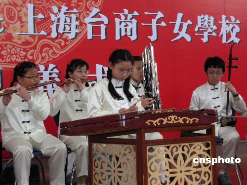 一月二十一日,上海臺(tái)商子女學(xué)校的學(xué)生在“兩岸學(xué)生才藝聯(lián)歡迎新年”活動(dòng)上表演民族器樂。臺(tái)北縣秀朗小學(xué)的部分學(xué)生也專程赴上海參加該活動(dòng),與在上海的臺(tái)商學(xué)子共敘親情,交流藝技和學(xué)習(xí)心得。 中新社發(fā) 潘索菲 攝