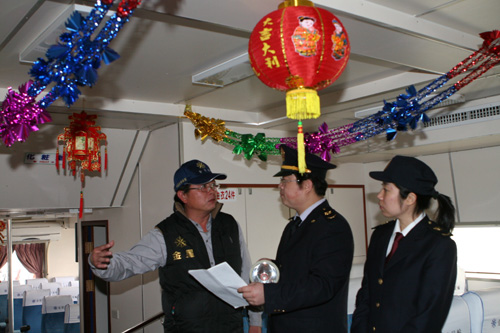 臺輪金星船上張燈結(jié)彩春節(jié)味道正濃