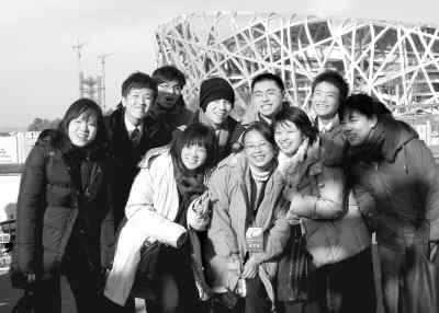 臺(tái)灣學(xué)生們?cè)凇傍B巢”前合影
