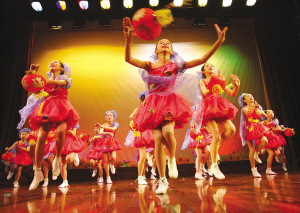 昨天下午,紅蜻蜓少兒藝術(shù)團在表演群舞《紅紅的日子》。盧春雨 吳映 攝