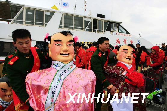 2月17日,來(lái)自馬祖的演出道具運(yùn)抵馬尾。當(dāng)日,57名馬祖代表團(tuán)演出及工作人員通過(guò)“兩馬”航線抵達(dá)福州馬尾,將在元宵節(jié)前后參加“兩馬同春鬧元宵”活動(dòng)。來(lái)自馬尾、馬祖的同胞將相聚一起,用煙花、歌舞、燈會(huì)等活動(dòng)慶祝元宵節(jié)。新華社記者 魏培全 攝