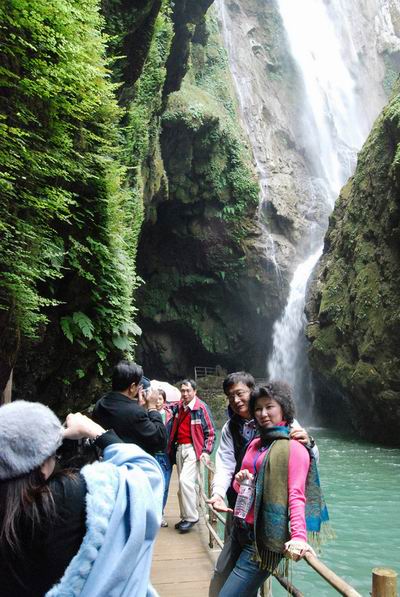 2月29日,臺(tái)灣客人在峽谷群景區(qū)內(nèi)拍照紀(jì)念。
