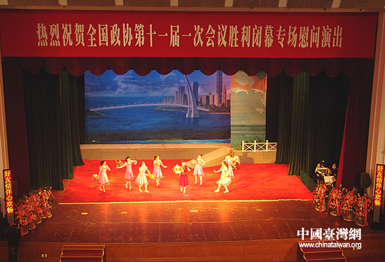 中國臺灣網(wǎng)3月16日北京消息 以反映海峽兩岸京劇梨園世家文化藝術交流、情感交織為主線的大型現(xiàn)代京劇《海上生明月》昨晚在全國政協(xié)禮堂演出。全國政協(xié)副主席孫家正、國臺辦副主任孫亞夫、海協(xié)會副會長張銘清等觀看了演出。