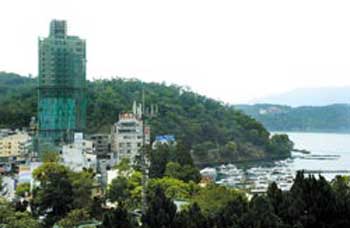 看好大陸觀光客商機(jī),打著房價(jià)一晚一萬六千元起跳、號(hào)稱住宿等級(jí)比涵碧樓更高級(jí)的日月潭日月行館,去年才取得南投縣政府的BOT特許經(jīng)營權(quán),原本預(yù)估要兩年才能完工,現(xiàn)在則是日夜趕工,計(jì)劃提前半年完工營運(yùn)。轟轟的機(jī)具聲,讓住在旁邊的“觀光局”日月潭風(fēng)景管理處長曾國基都抱怨說:“半夜兩點(diǎn)都會(huì)被嚇醒!